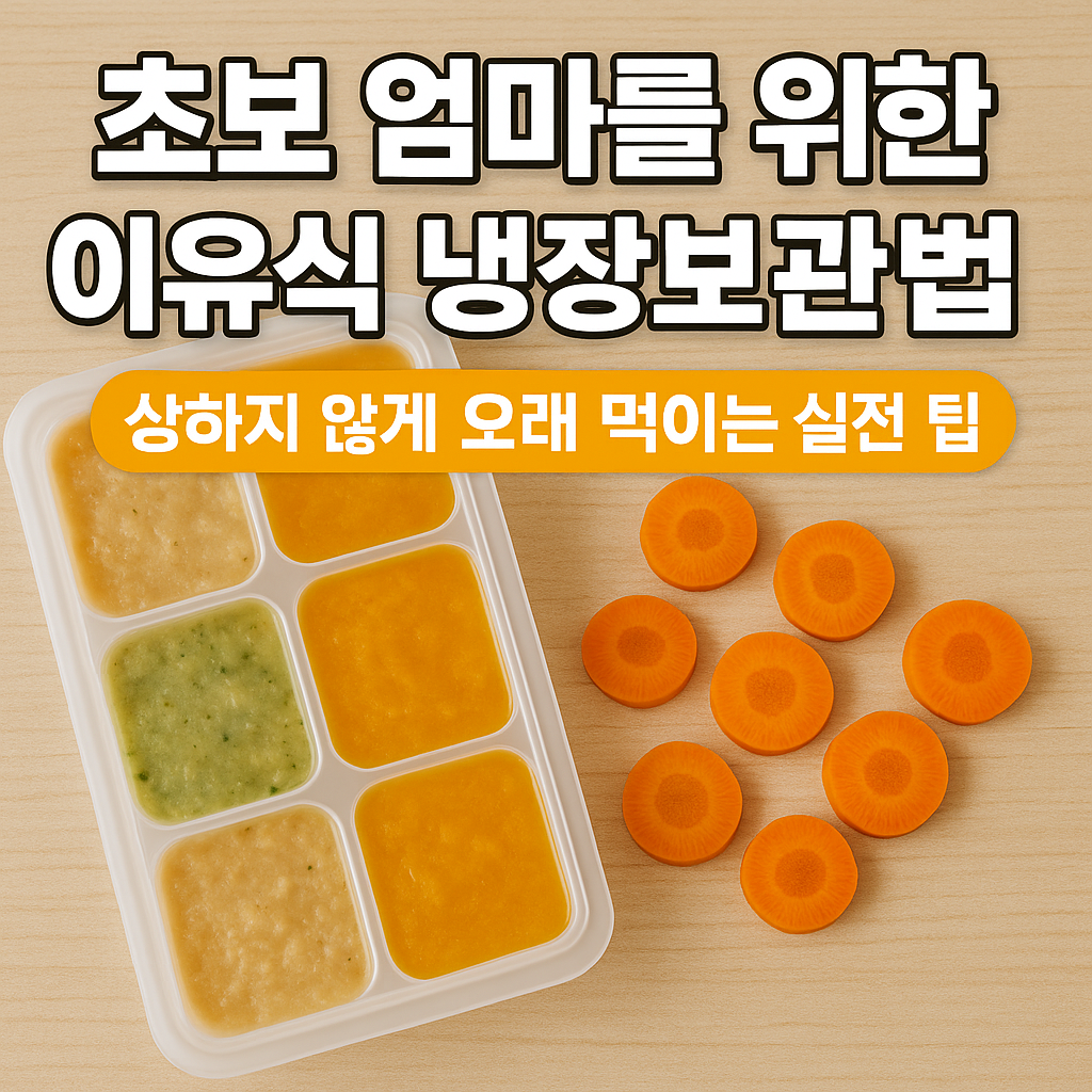 예: “이유식 냉장보관 꿀팁”이라는 제목과 이유식 이미지가 포함된 밝고 따뜻한 스타일로 구성해드릴 수 있어요. 원하시면 바로 생성해드릴게요!